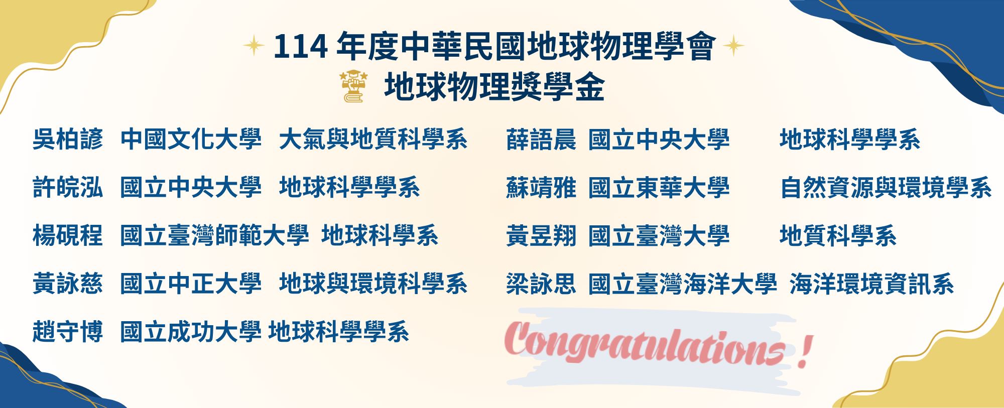 學生論文壁報比賽評審徵求-中華民國地球物理學會與中華民國地質學會115年年會暨學術研討會